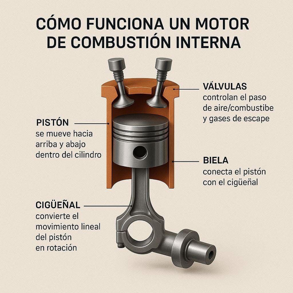 🔧 ¿Cómo funciona un motor de combustión interna? 🔥🚗 Un motor transforma explosiones controladas en movimiento, y estos son sus componentes clave: 🧱 Pistón Se mueve hacia arriba y abajo dentro del cilindro para generar la fuerza de empuje. ⚙️ Biela Une el pistón con el cigüeñal y transmite el movimiento. 🔄 Cigüeñal Convierte el movimiento lineal del pistón en rotación para mover las ruedas. 🛠️ Válvulas Controlan la entrada de aire/combustible y la salida de gases de escape. 💡 Este proceso ocurre cientos de veces por minuto para impulsar tu vehículo. 🚀 Somos distribuidores de recambios originales de estos componentes del motor. Consulta con nuestros expertos: 987347859