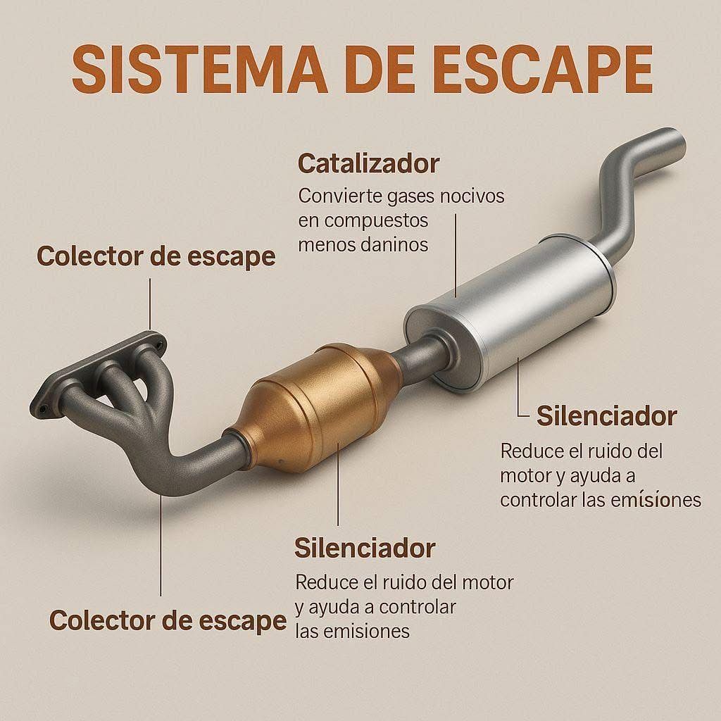 🚗 SISTEMA DE ESCAPE – ¿Qué hace y por qué es importante? El sistema de escape se encarga de conducir los gases producidos por la combustión hacia el exterior del vehículo, reduciendo ruido y contaminación. Está formado por varios componentes clave: 🔧 Colector de escape Recoge los gases que salen del motor y los envía hacia el sistema de escape. ♻️ Catalizador Convierte los gases nocivos en compuestos menos dañinos antes de liberarlos al ambiente. 🔇 Silenciador Reduce el ruido del motor y ayuda a controlar las emisiones. 👉 Un sistema de escape en mal estado genera ruidos fuertes, pérdida de potencia y más contaminación. ¡Revísalo periódicamente para evitar problemas! Consulta con nuestros expertos cualquier duda, somos distribuidores de todo el sistema de escape.