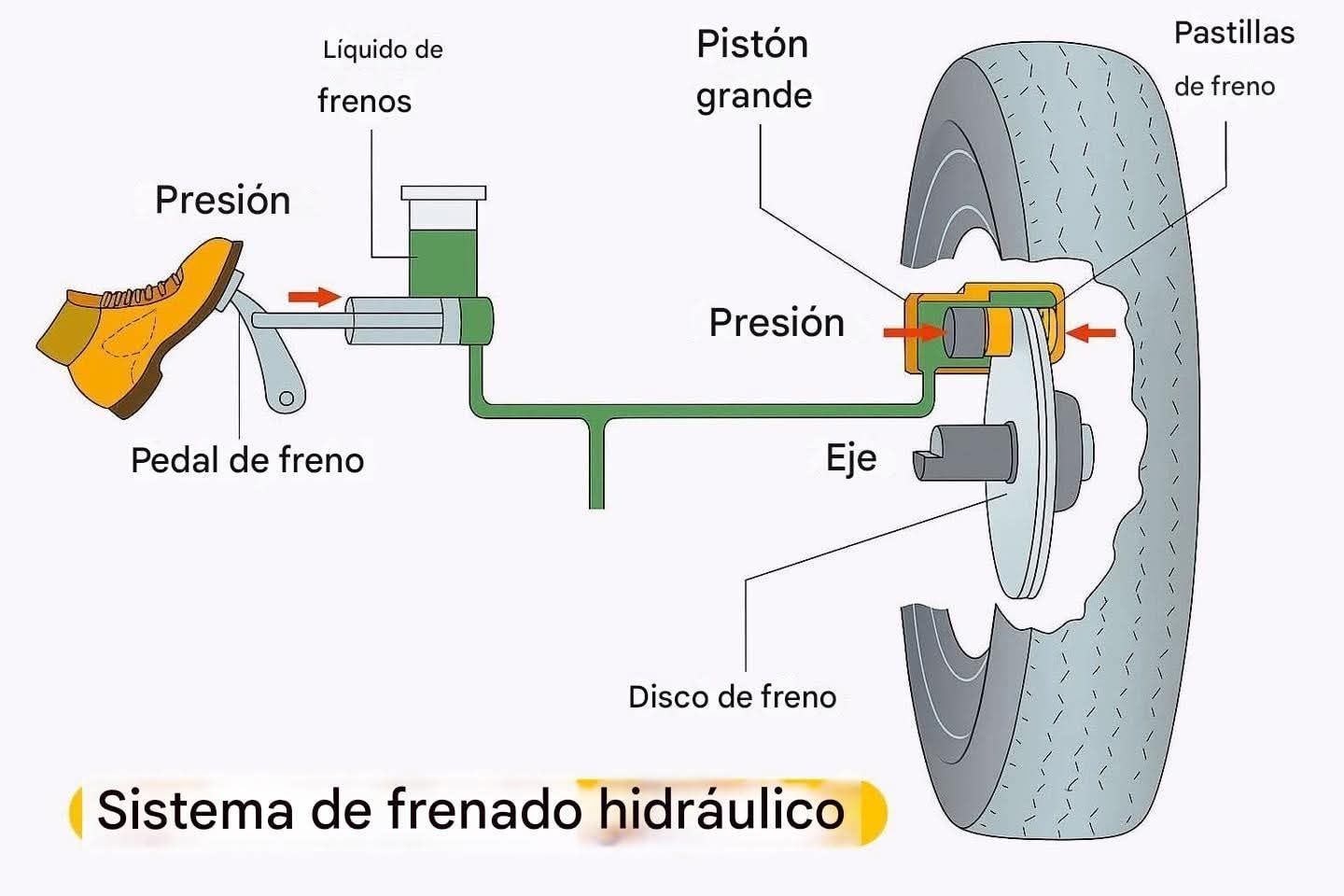💡 Esto significa que una pequeña fuerza aplicada en el pedal se multiplica al llegar a los pistones de freno, permitiendo detener un vehículo pesado con poco esfuerzo.